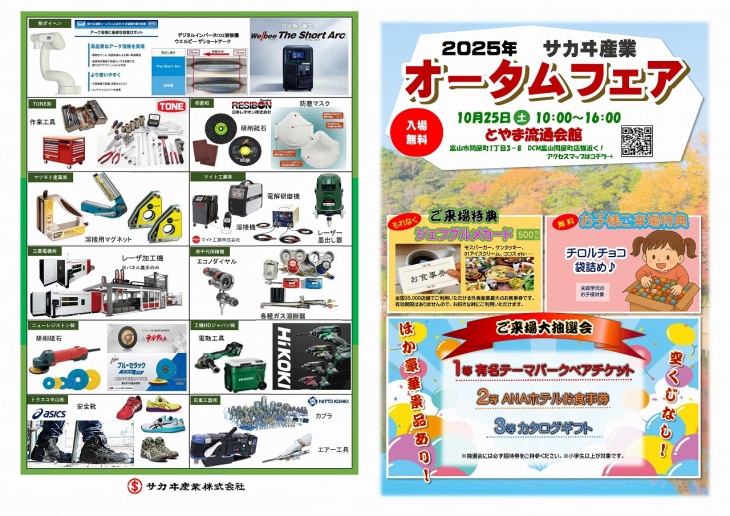 10月25日(土)10時~16時、富山市のとやま流通会館にて『2025年サカヰ産業 オータムフェア(呉東エリア)』を開催します。