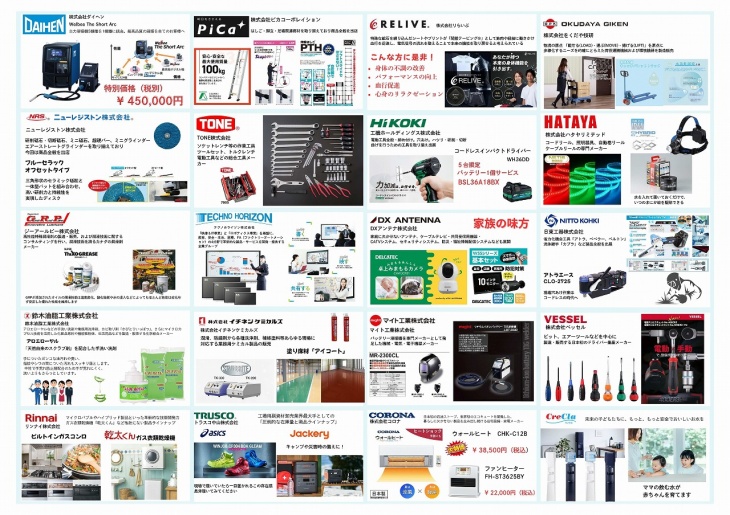 年に一度、お仕事に役立つ各種商品はもちろん、一般家庭向けの住設機器や家電など、さまざまな商品の実物を展示いたします。